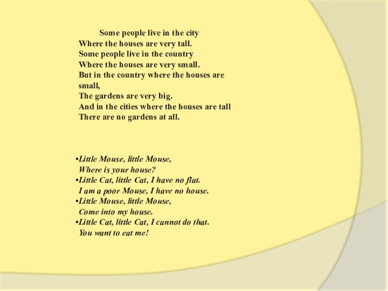Some people live in the cityWhere the houses are very tall.Some people live in the countryWhere the