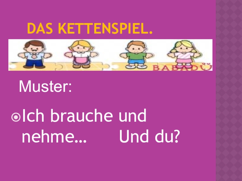 Das kettenspiel.Ich brauche und nehme…   Und du?Muster:
