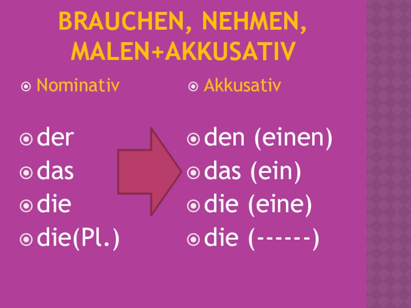 Слайд 12Brauchen, nehmen, malen+Akkusativ