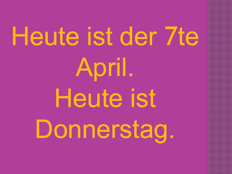 Слайд 1Heute ist der 7te April. Heute ist Donnerstag.