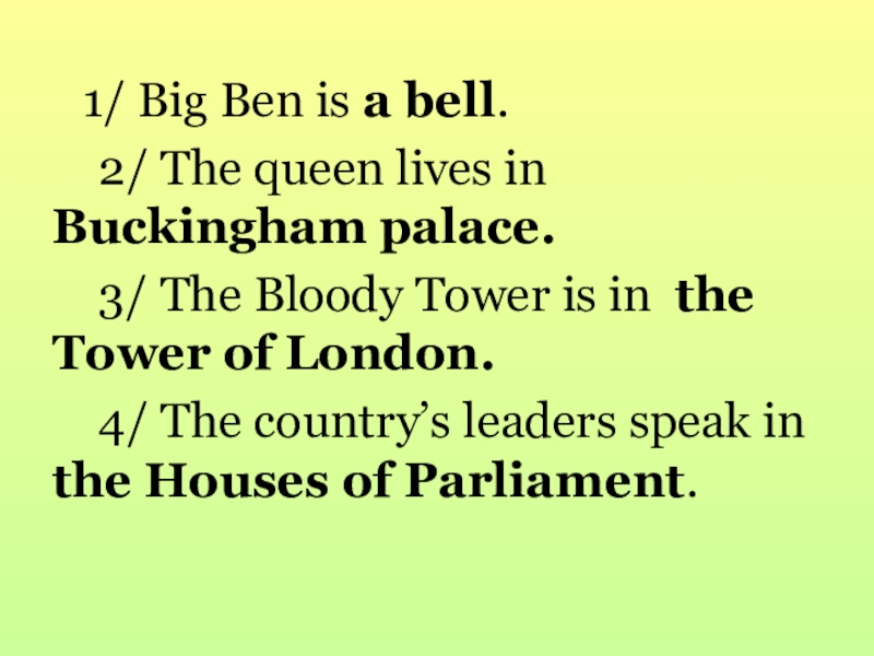 4) The country’s leaders speak in -The Houses of Parliament -Big Ben