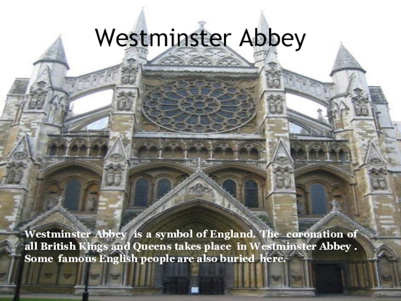 all British Kings and Queens takes place in Westminster Abbey . Some famous English people are also buried here.