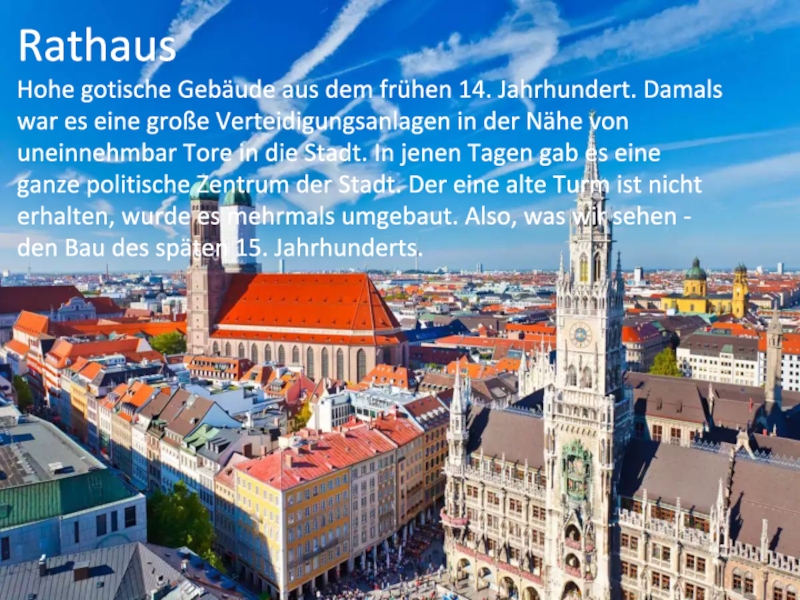 Слайд 2München - eine schöne Stadt, ein wahres Juwel mittelalterlicher Architektur. Das