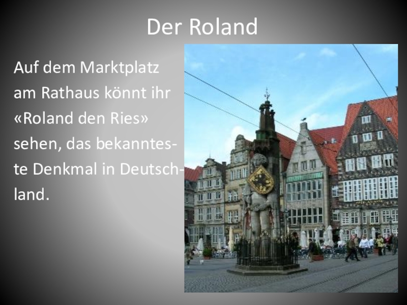 Der RolandAuf dem Marktplatzam Rathaus könnt ihr«Roland den Ries»sehen, das bekanntes-te Denkmal in Deutsch-land.