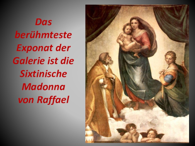Слайд 22Das berühmteste Exponat der Galerie ist die Sixtinische Madonna von Raffael