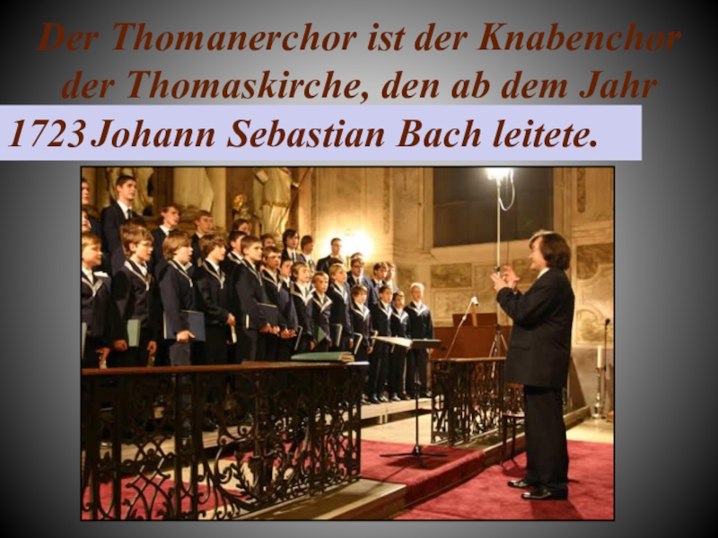 Слайд 40Der Thomanerchor ist der Knabenchor der Thomaskirche, den ab dem Jahr