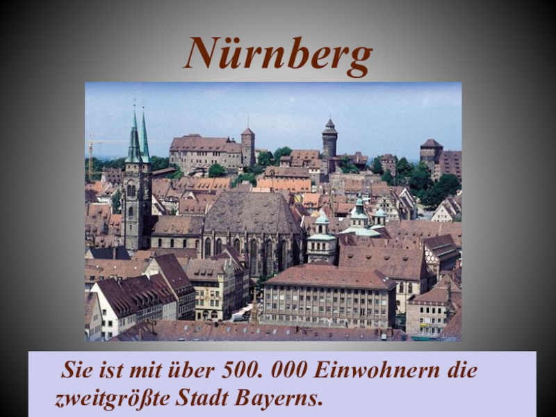 Nürnberg	Sie ist mit über 500. 000 Einwohnern die zweitgrößte Stadt Bayerns.
