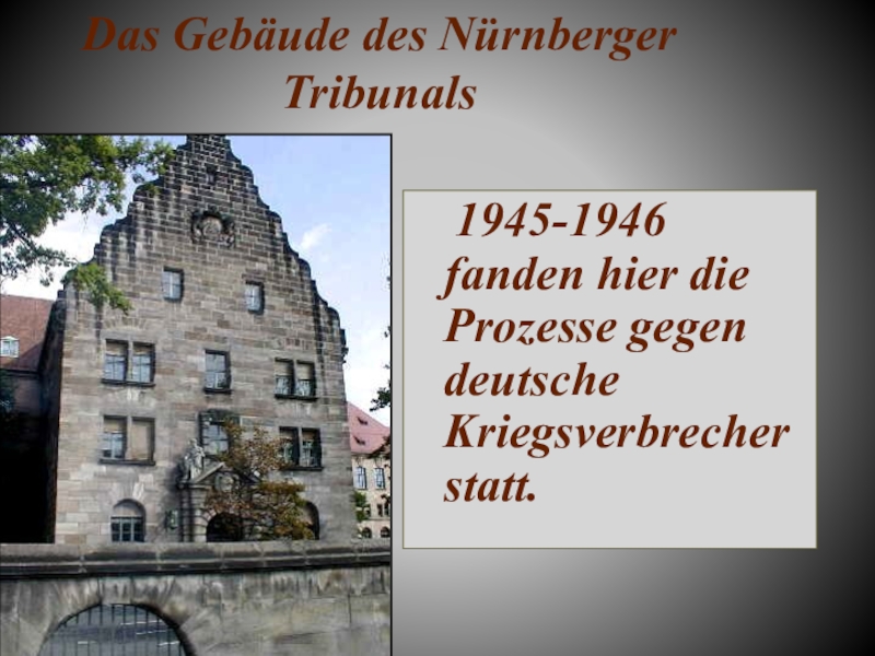 Слайд 34 1945-1946 fanden hier die Prozesse gegen deutsche Kriegsverbrecher statt.