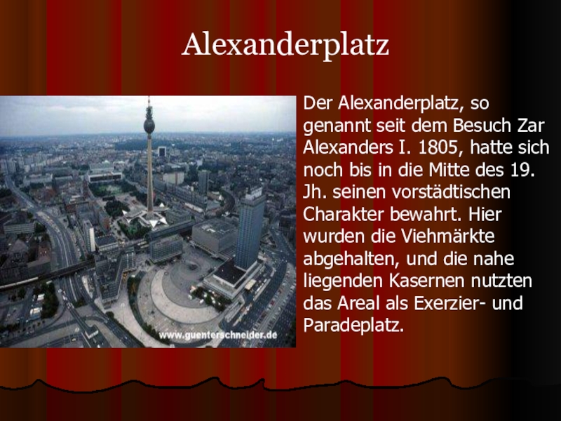 Der Alexanderplatz, so genannt seit dem Besuch Zar Alexanders I. 1805,