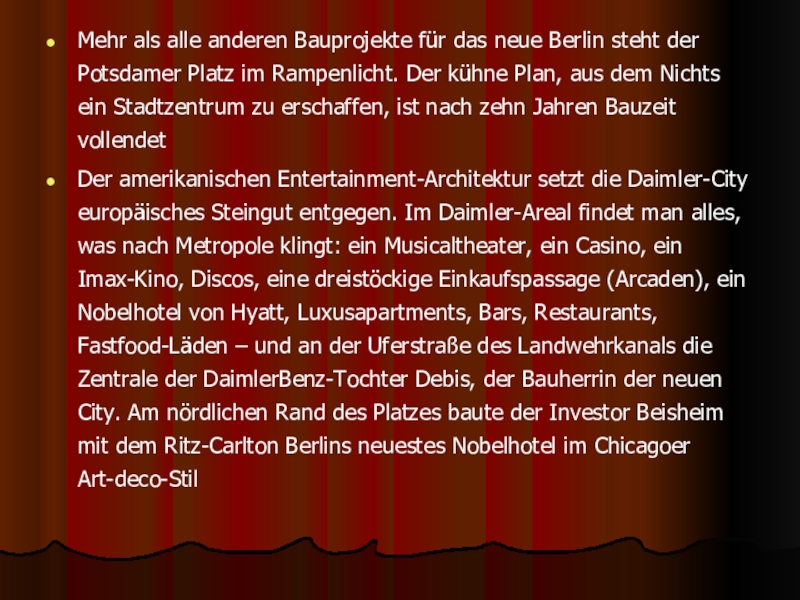 Слайд 22Mehr als alle anderen Bauprojekte für das neue Berlin steht der