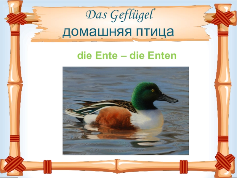 Das Geflügel  домашняя птицаdie Ente – die Enten