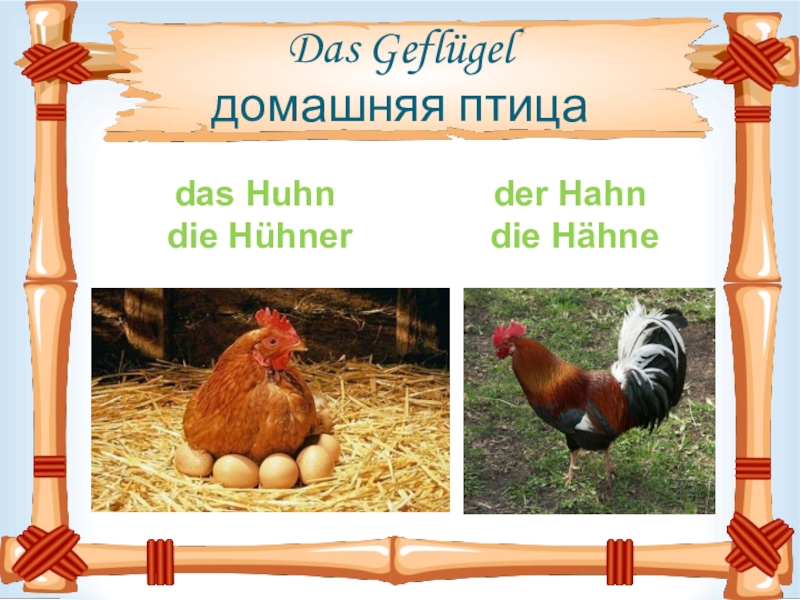 Das Geflügel  домашняя птицаdas Huhn die Hühnerder Hahn die Hähne