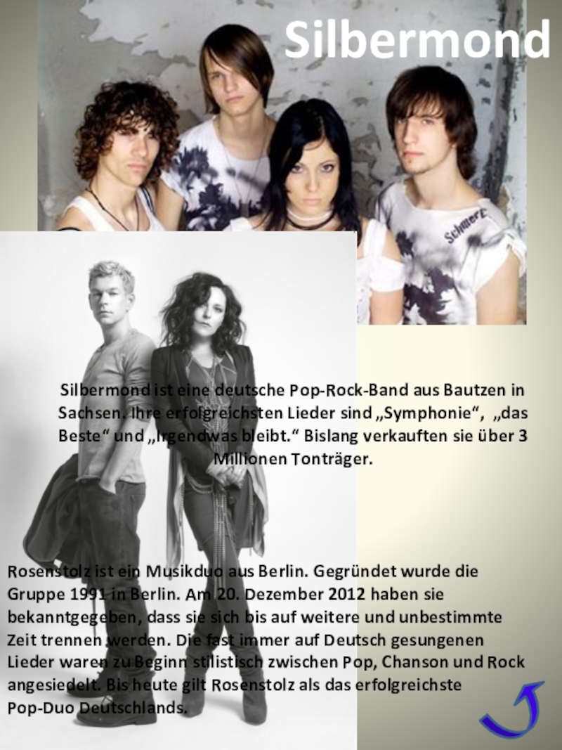 Silbermond ist eine deutsche Pop-Rock-Band aus Bautzen in Sachsen. Ihre erfolgreichsten Lieder sind „Symphonie“, „das Beste“ und „Irgendwas bleibt.“ Bislang verkauften sie über 3 Millionen Tonträger.