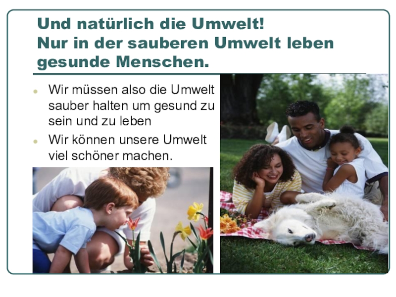 Wir müssen also die Umwelt sauber halten um gesund zu sein und zu leben