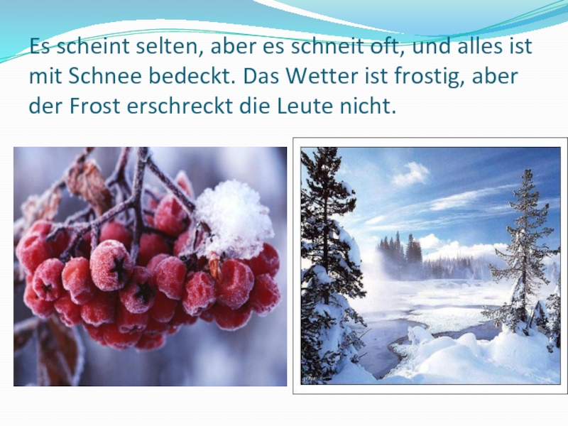 Слайд 5Es scheint selten, aber es schneit oft, und alles ist mit