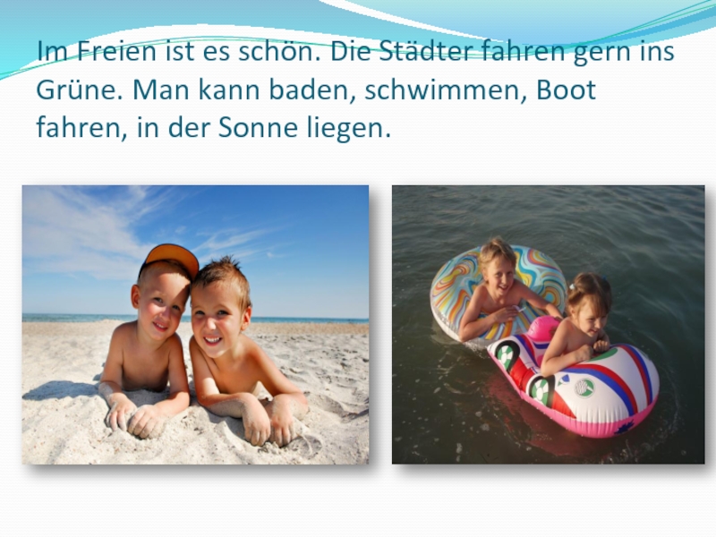 Слайд 14Im Freien ist es schön. Die Städter fahren gern ins Grüne.