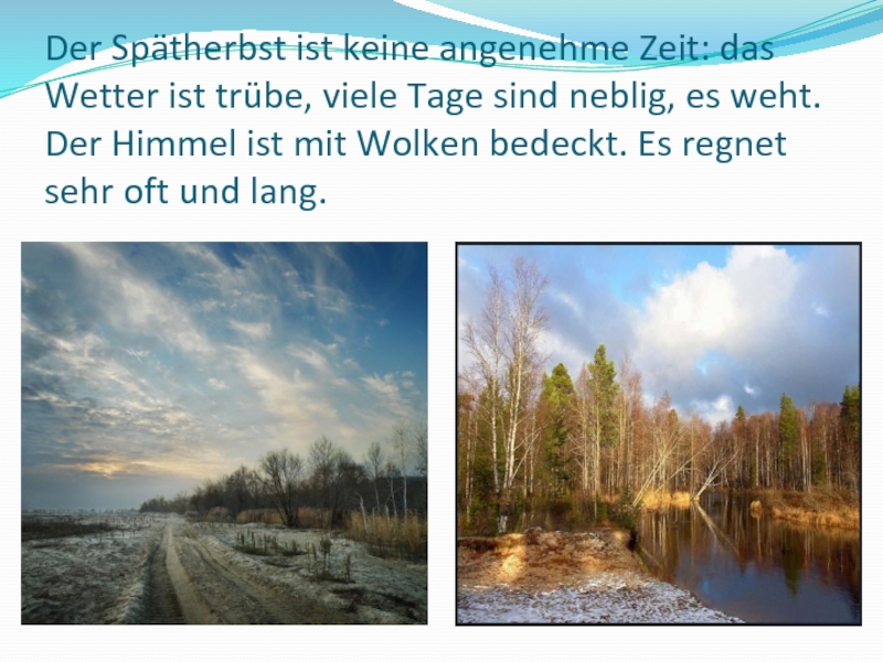 Слайд 19Der Spätherbst ist keine angenehme Zeit: das Wetter ist trübe, viele