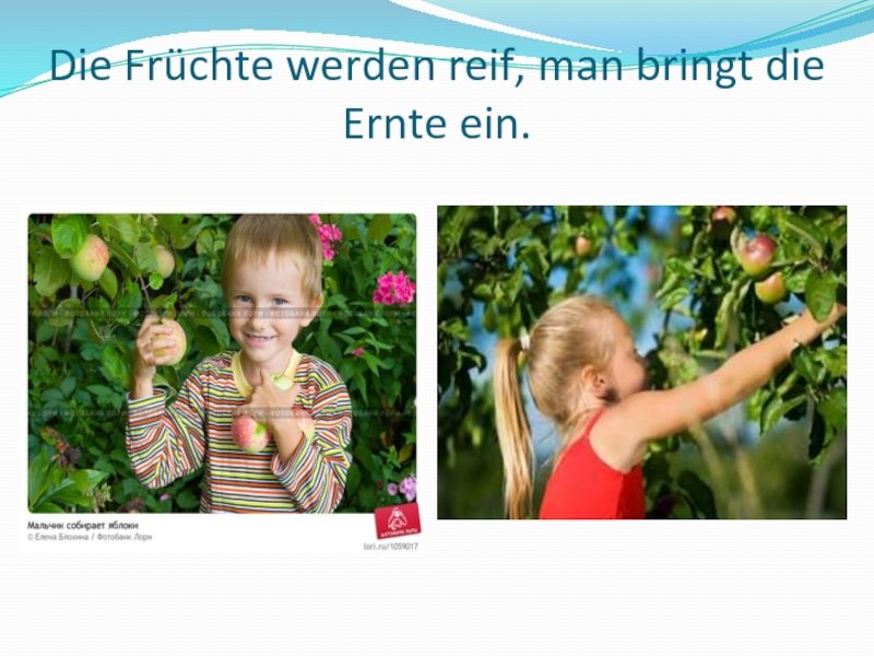 Слайд 18Die Früchte werden reif, man bringt die Ernte ein.
