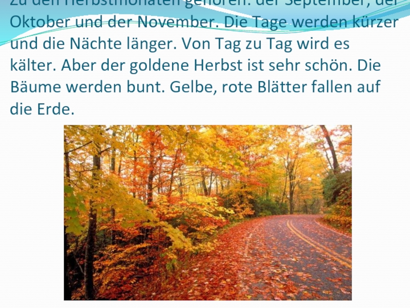 Слайд 17Zu den Herbstmonaten gehören: der September, der Oktober und der November.