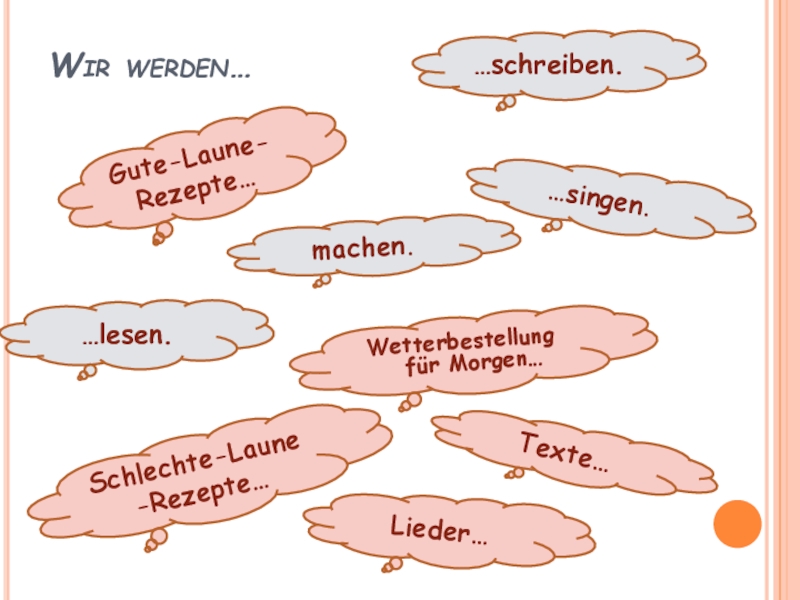 gute Noten, keine/viele Hausaufgaben, Musik, gute Laune, ein Konzert, Deutsch