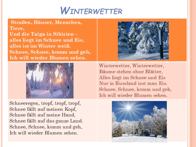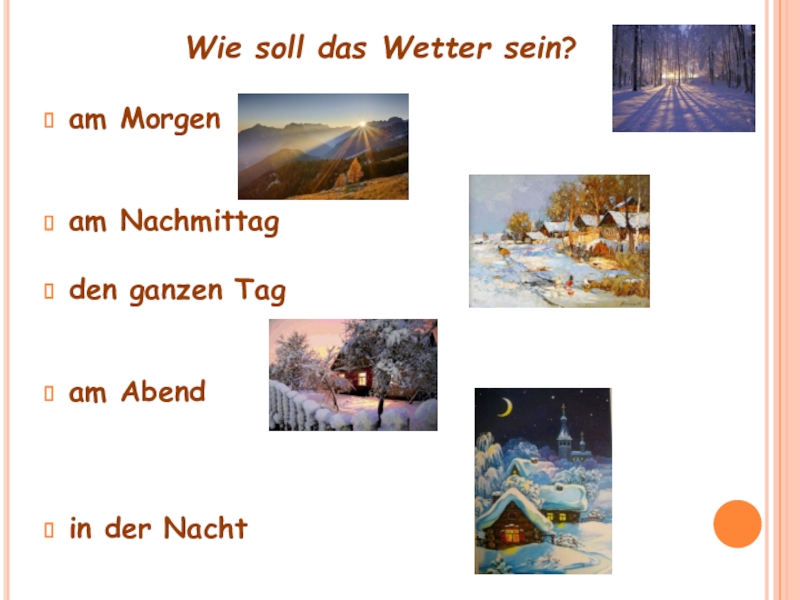 scheint die Sonne, schneit es, blitzt es, donnert es, ist es windig/ neblig/ heiter