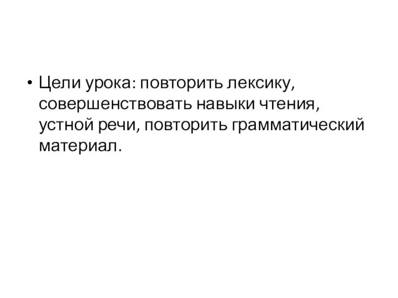Цели урока: повторить лексику,