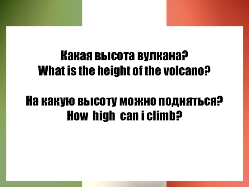 Слайд 12Какая высота вулкана? What is the height of the volcano? На какую высоту