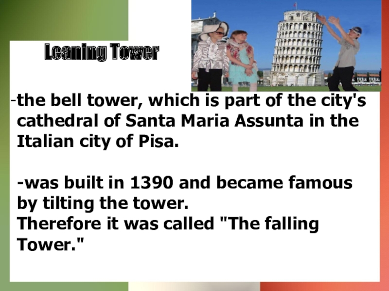 take the trip from Rome to Pisa? Какой угол наклона у Пизанской башни? What is the angle of inclination of the leaning tower of Pisa?
