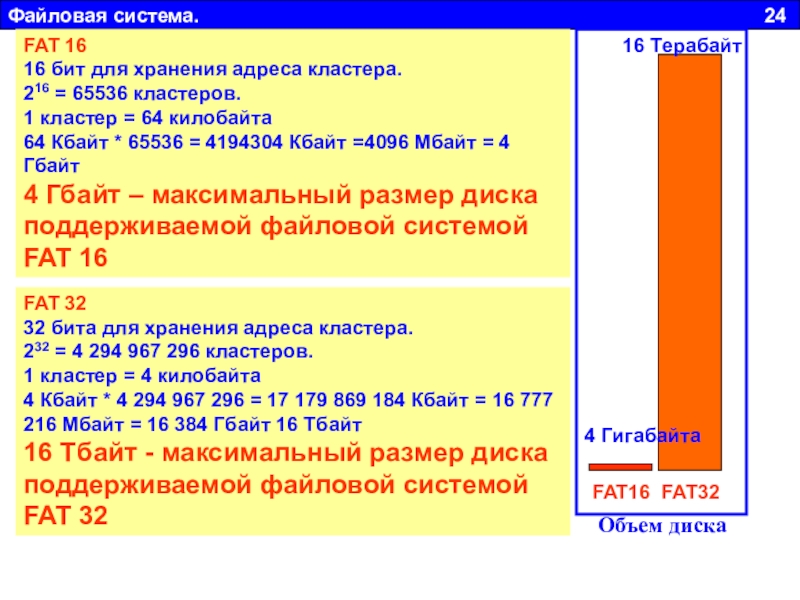 4 Гбайт – максимальный размер диска поддерживаемой файловой системой