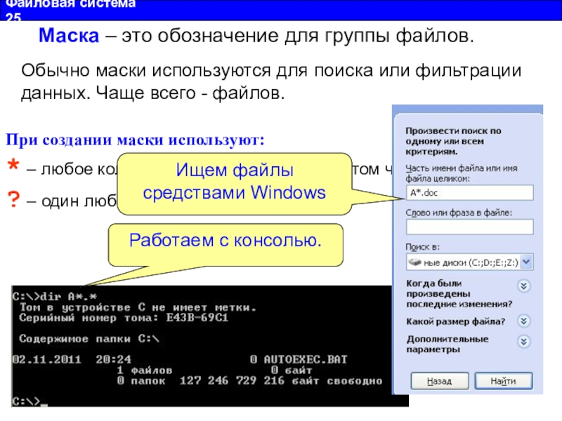 Обычно маски используются для поиска или фильтрации данных. Чаще всего - файлов.