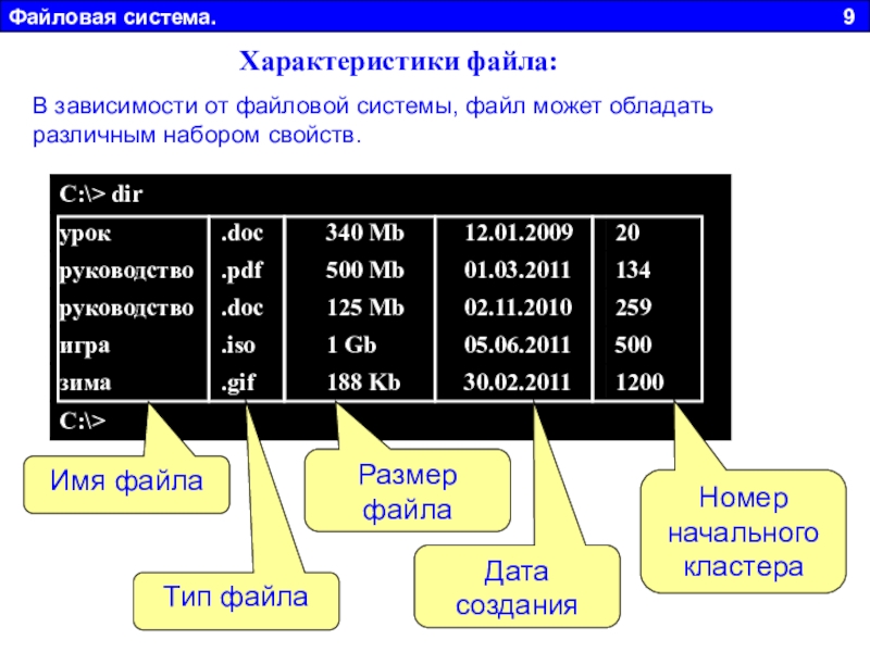 В зависимости от файловой системы, файл может обладать различным набором свойств.