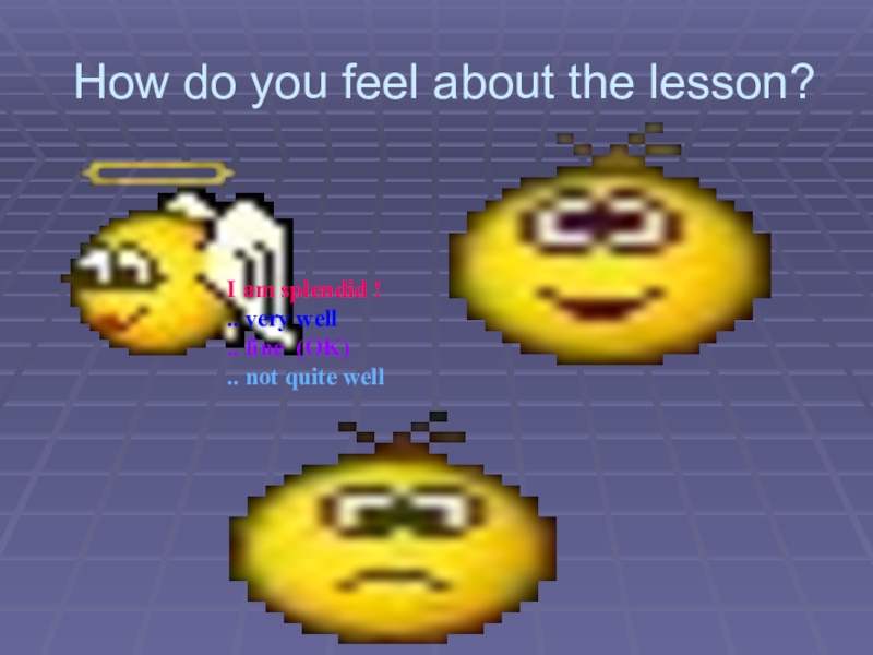 How do you feel about the lesson?I am splendid !.. very well	.. fine (OK).. not quite well