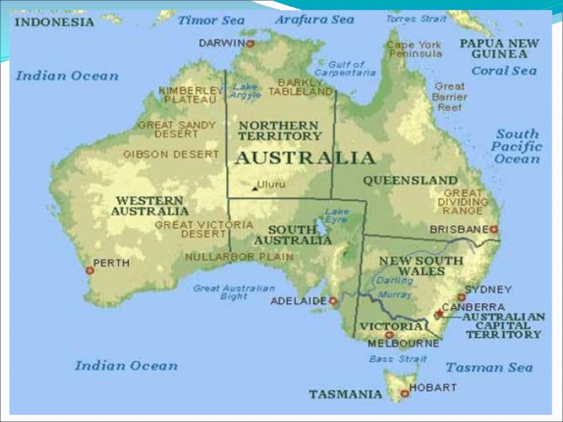 Слайд 6Australia i/əˈstreɪljə,/əˈstreɪljə, ɒ-,/əˈstreɪljə, ɒ-, -iə/,[10][11] officially the Commonwealth of Australia,[12] is a country comprising the mainland of the Australian