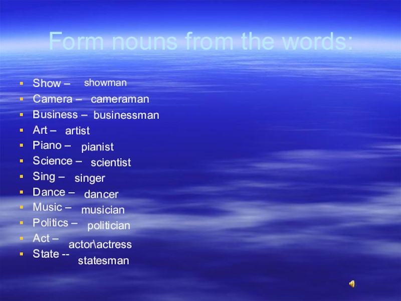 Это сайт презентаций, где можно хранить и обмениваться своими презентациями, докладами, проектами, шаблонами в формате PowerPoint с другими пользователями. Мы помогаем школьникам, студентам, учителям, преподавателям хранить и обмениваться учебными материалами.