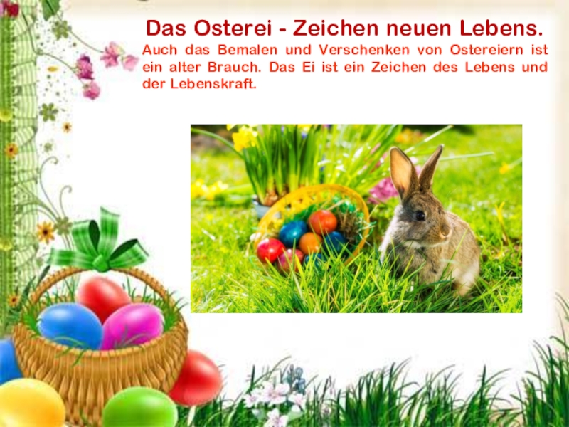Слайд 20Das Osterei - Zeichen neuen Lebens.