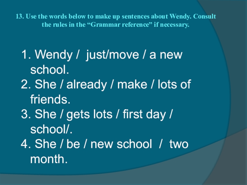 1. Wendy / just/move / a new school.