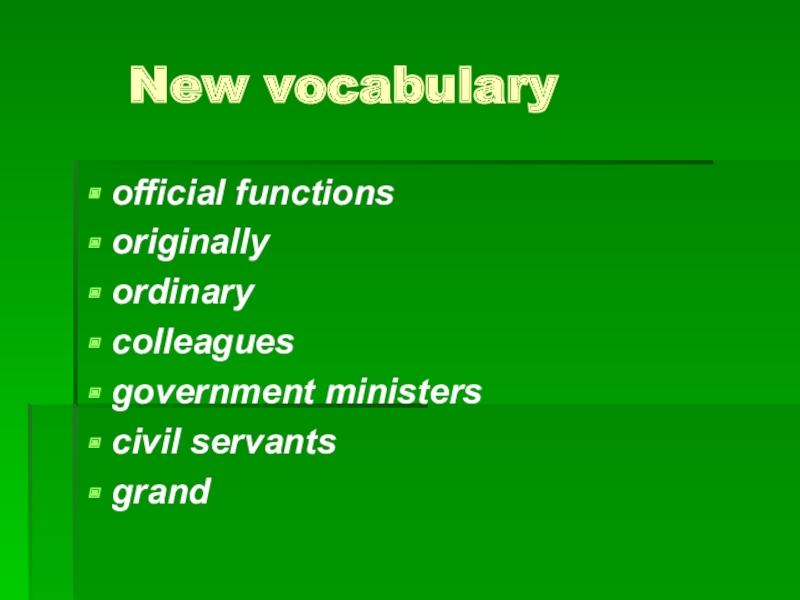 New vocabularyofficial functionsoriginallyordinarycolleaguesgovernment ministerscivil servantsgrand