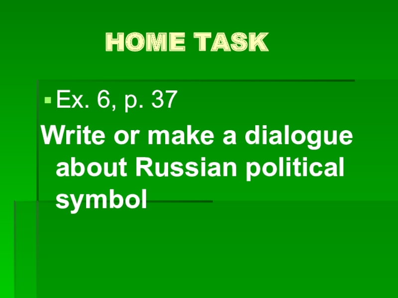 HOME TASKEx. 6, p. 37Write or make a dialogue about Russian political
