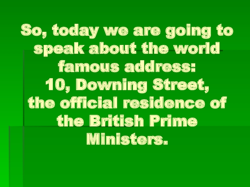 So, today we are going to speak about the world famous address:  10, Downing Street,