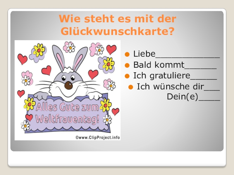 Слайд 11Wie steht es mit der Glückwunschkarte?