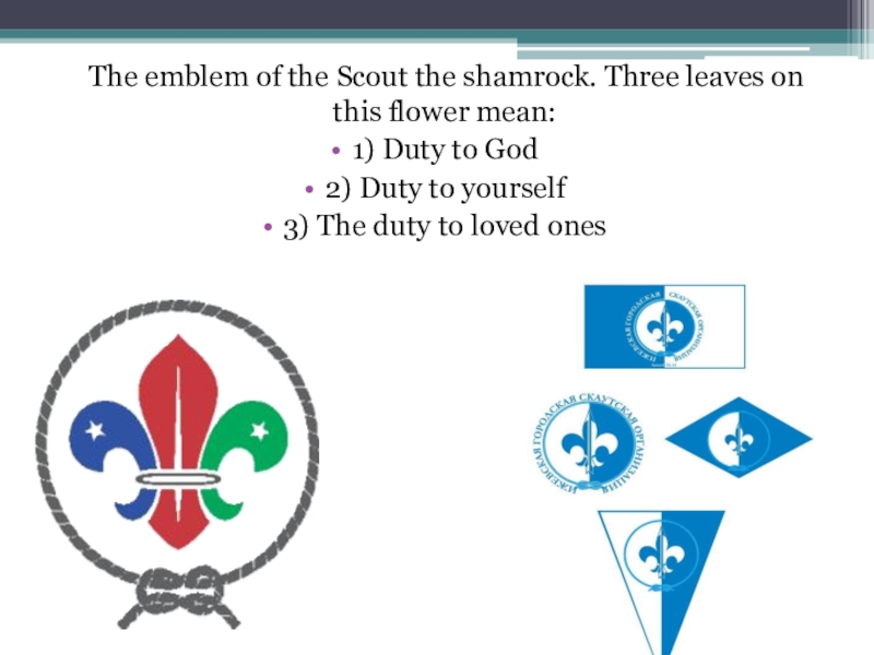 Слайд 10 The emblem of the Scout the shamrock. Three leaves