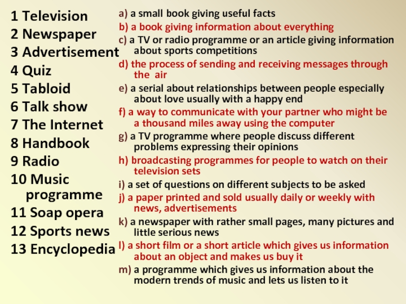 m) a programme which gives us information about the modern trends of music and lets us listen to it