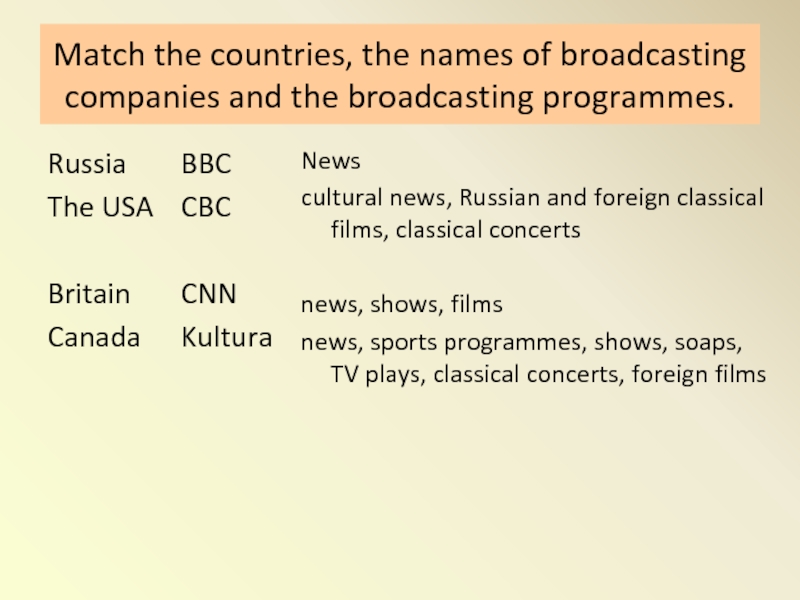 news, sports programmes, shows, soaps, TV plays, classical concerts, foreign films