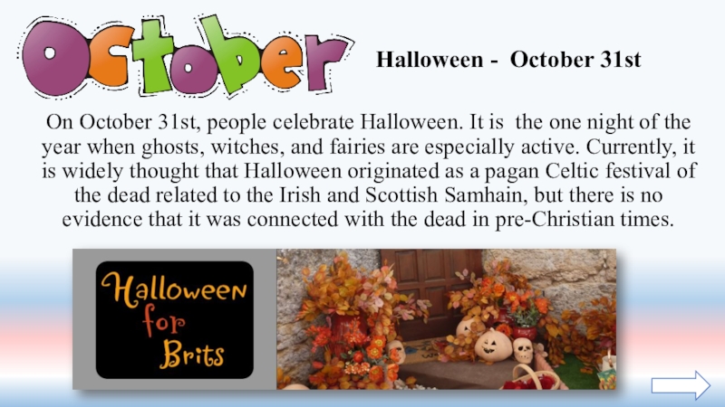 Слайд 34On October 31st, people celebrate Halloween. It is the one night