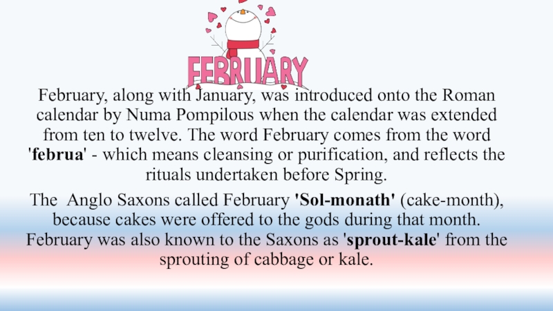 Слайд 7February, along with January, was introduced onto the Roman calendar by