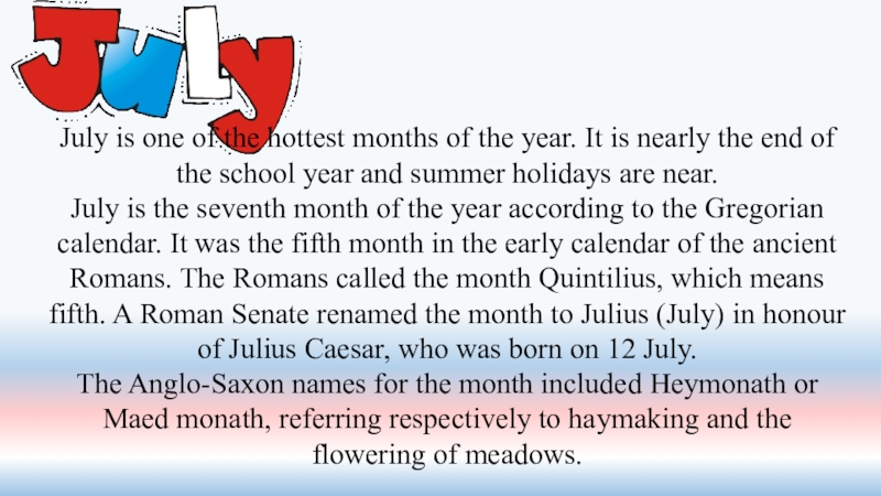 Слайд 25July is one of the hottest months of the year. It