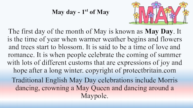 Слайд 20The first day of the month of May is known as