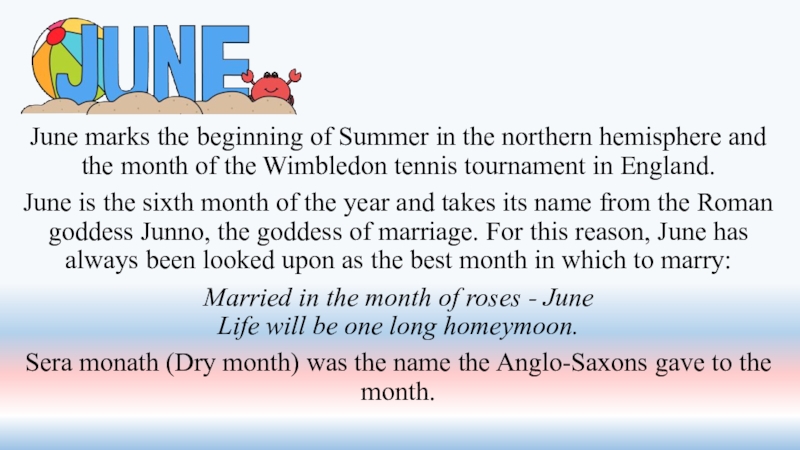Слайд 22June marks the beginning of Summer in the northern hemisphere and