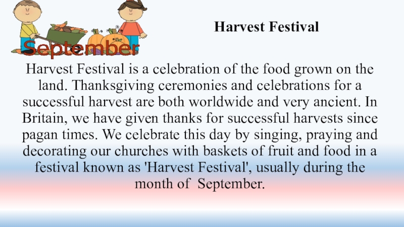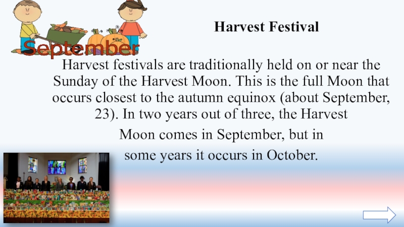 Слайд 32Harvest festivals are traditionally held on or near the Sunday of