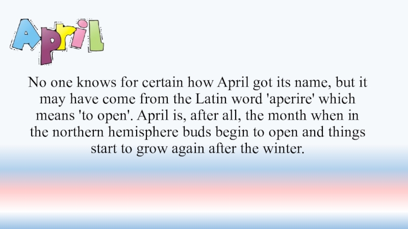 Слайд 15No one knows for certain how April got its name, but